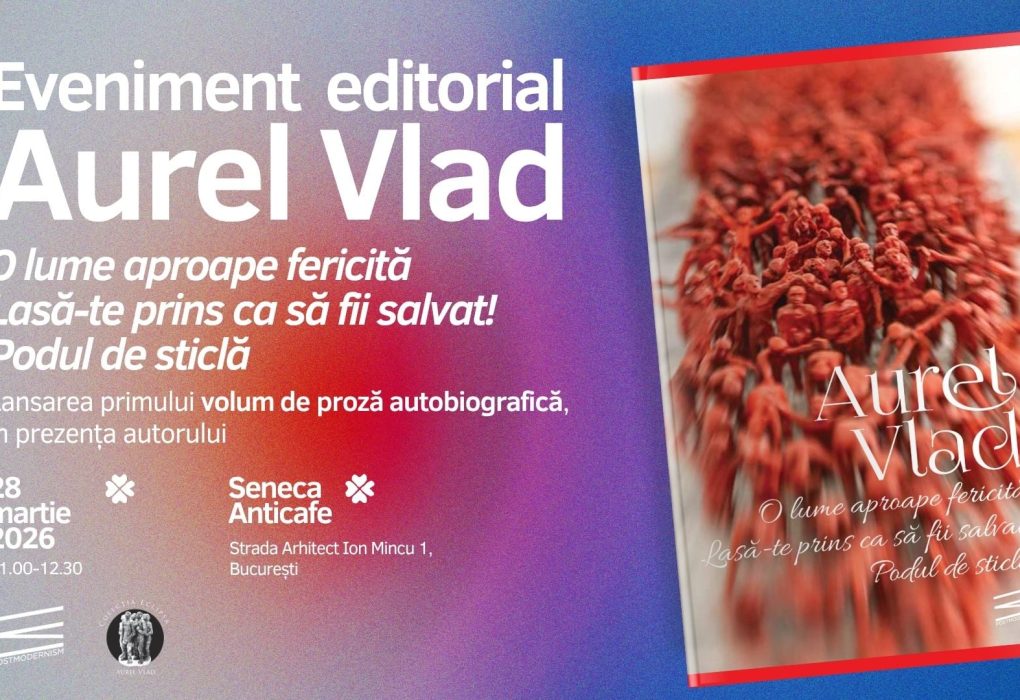Postmodernism Museum anunță că sâmbătă, 27 martie 2026, va fi lansat volumul „O lume aproape fericită. Lasă-te prins ca să fii salvat! Podul de sticlă” , prima incursiune în proza memorialistică a renumitului sculptor Aurel Vlad .Cartea marchează debutul Colecției Eclipsa – Aurel Vlad și beneficiază de o ediție îngrijită și un studiu introductiv semnat…